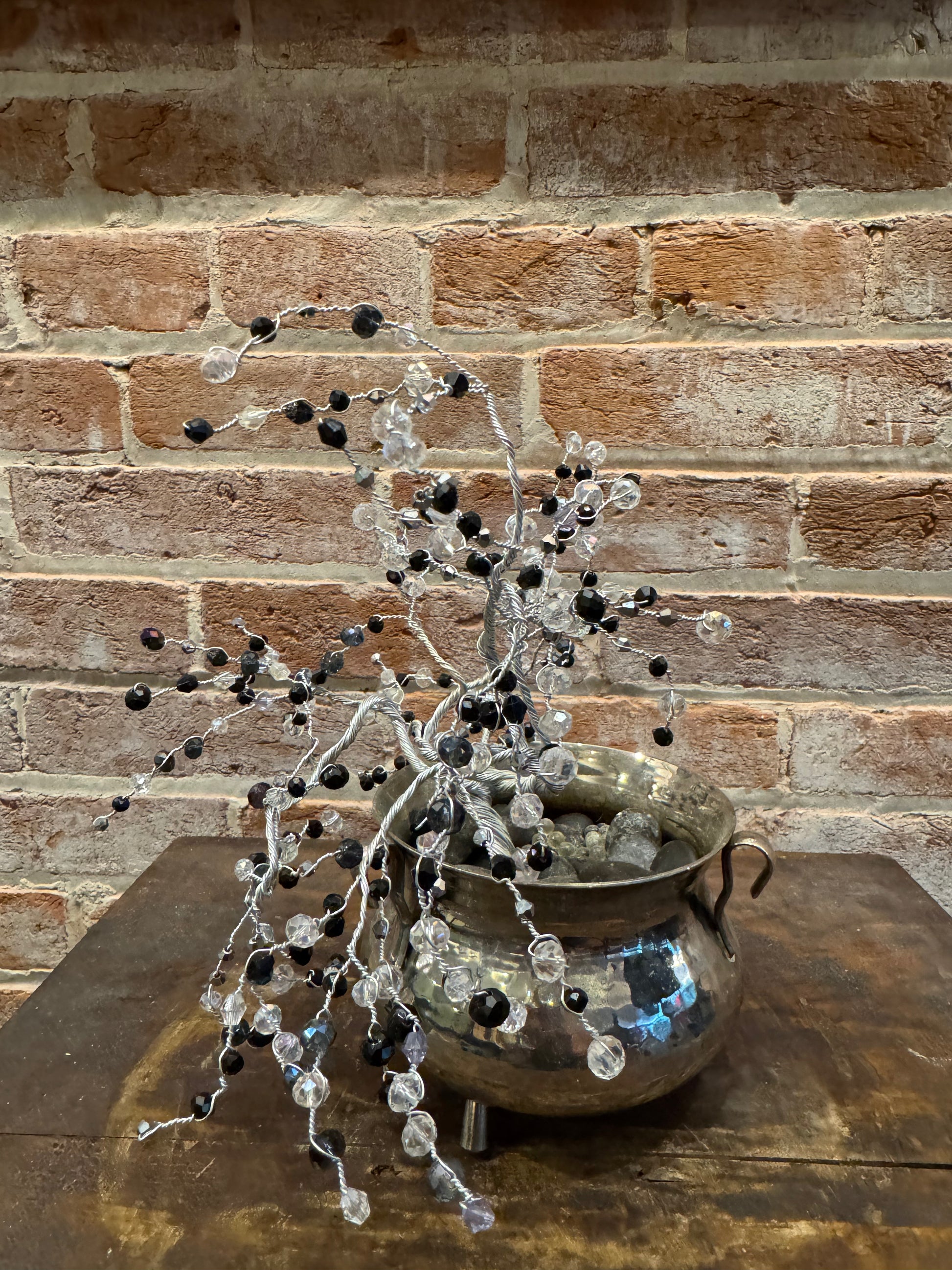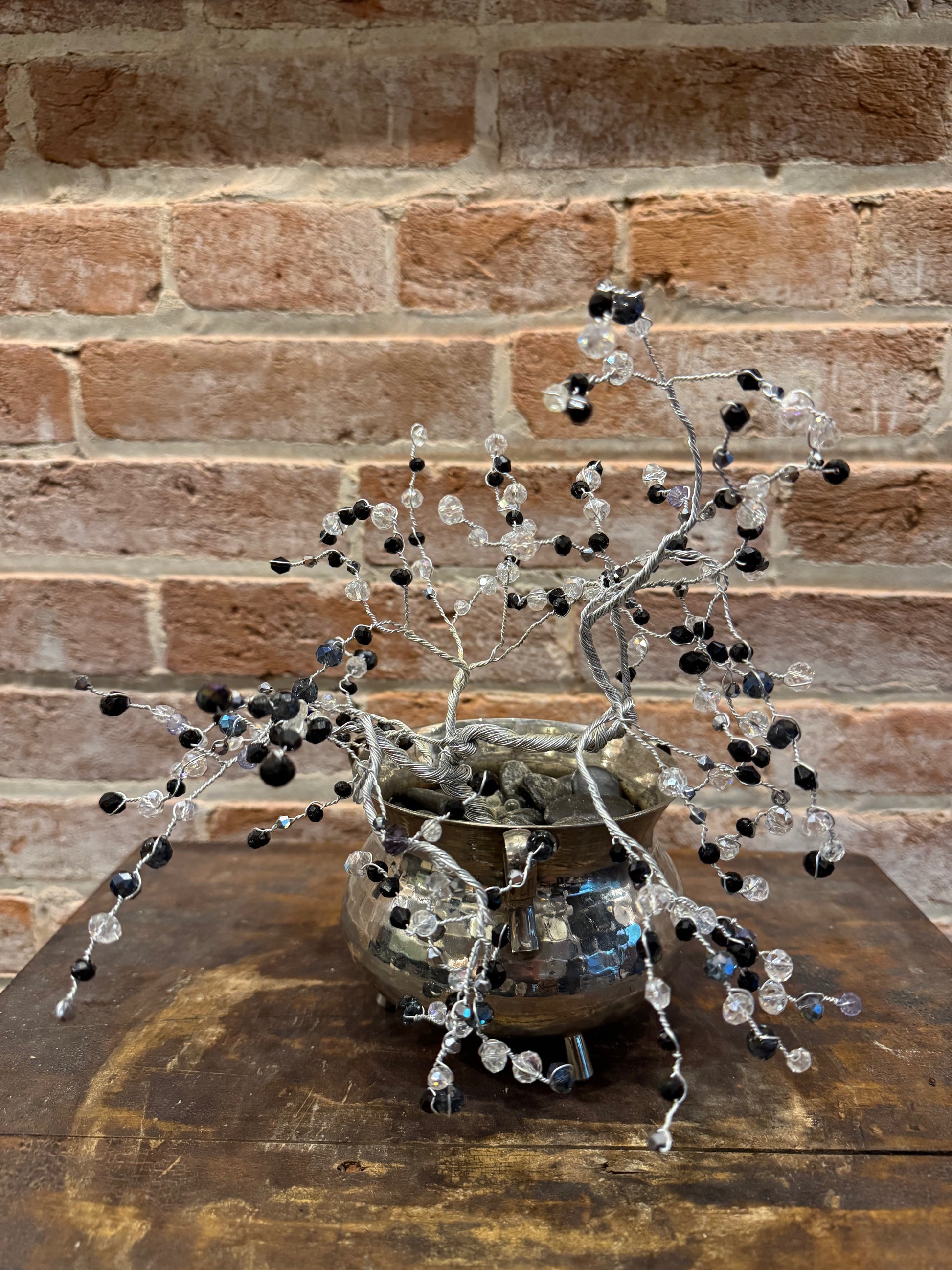 Black and Clear Crystal Wire Tree in Silver Colored Metal Mini Cauldron