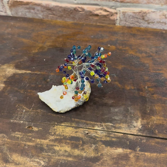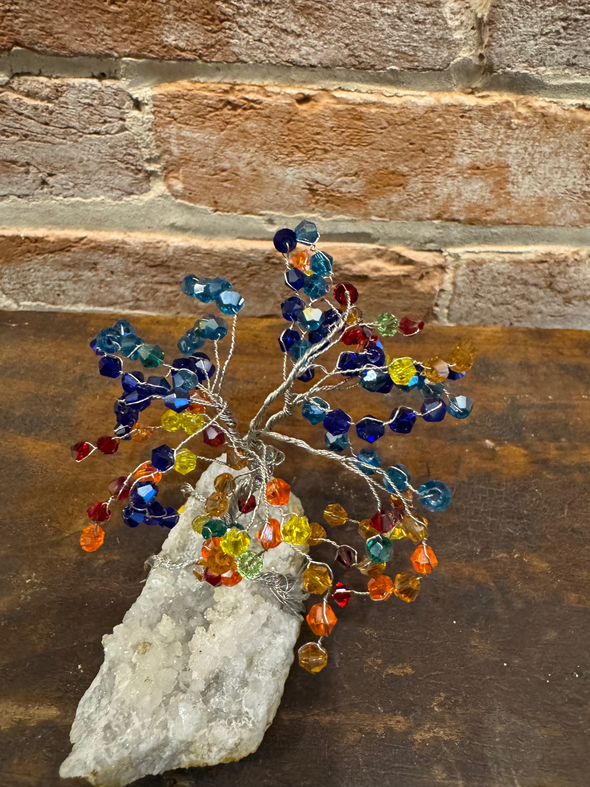 Beautifully handcrafted multicolor, posable wire tree sculpture on quartz rock.