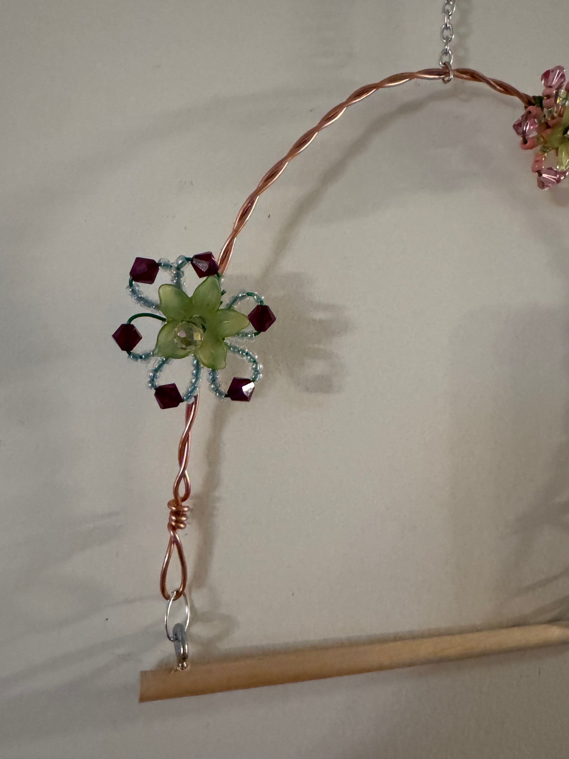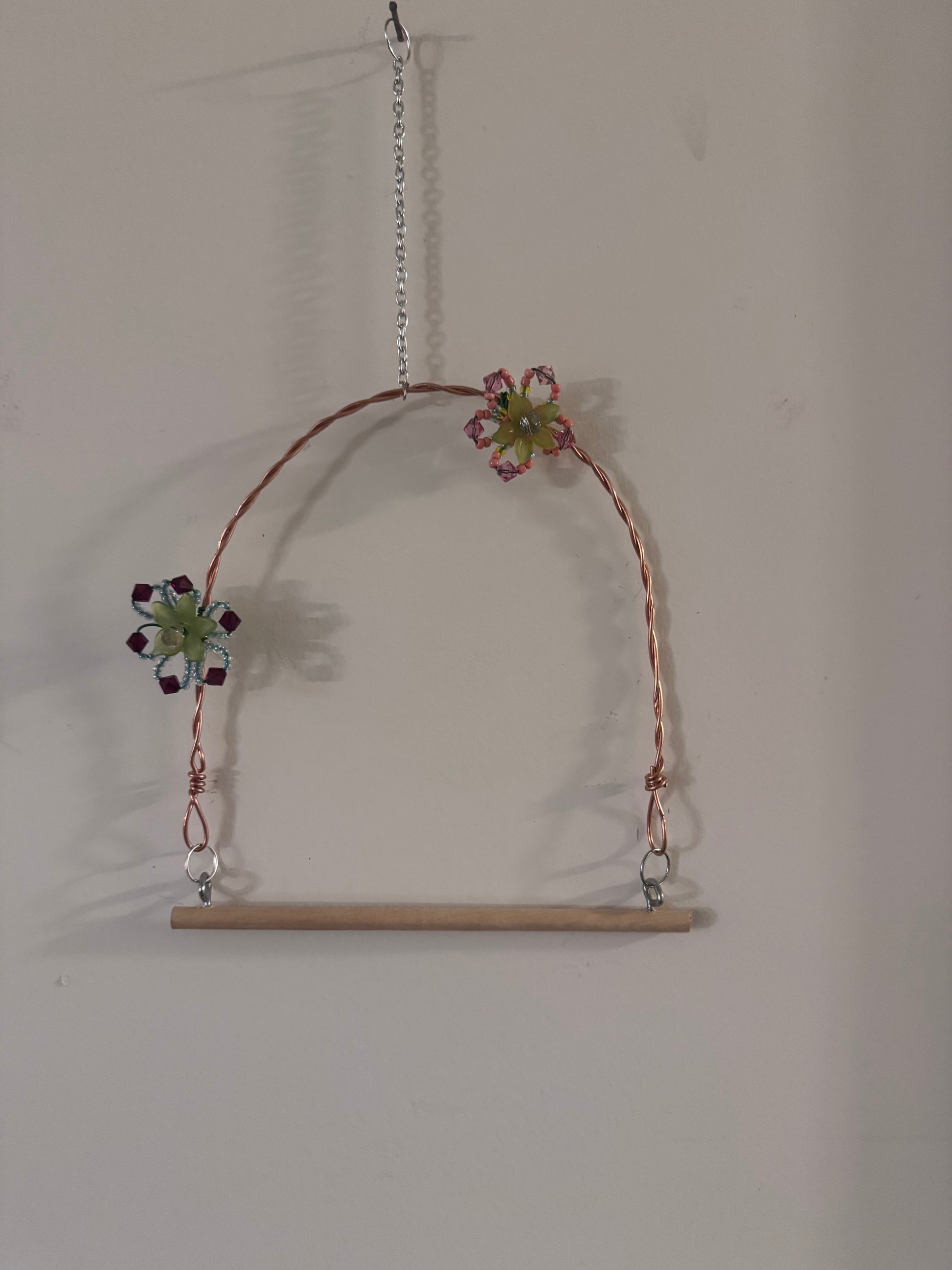 Hummingbird Perch with red flowers.